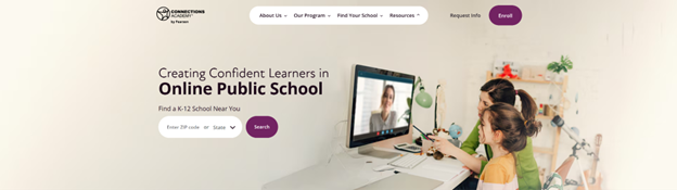 Connections Academy is an online K-12 school with teachers specially trained to teach online. The unique learning program offers flexible pacing, online clubs, in-person field trips and college-readiness opportunities. Parents of enrolled students serve as their children’s dedicated Learning Coach, helping facilitate their ongoing learning.