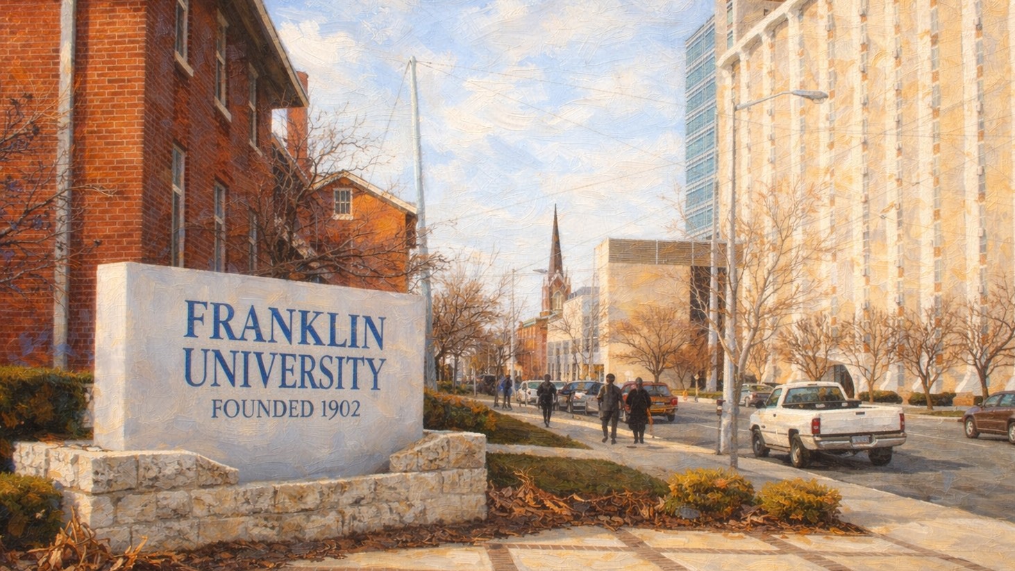 Franklin’s 14-acre downtown Columbus campus is a physical anchor for a predominantly online institution, offering in-person options for Ohio and Midwest students while the majority of enrollment is served fully online. International partnerships with the Seoul Women’s College of Nursing in South Korea, Singidunum University in Serbia, and the Wroclaw School of Banking in Poland extend Franklin’s reach beyond the domestic market — with 8,000-plus students from 72 countries, it is meaningfully more internationally diverse than its regional HLC identity might suggest.
